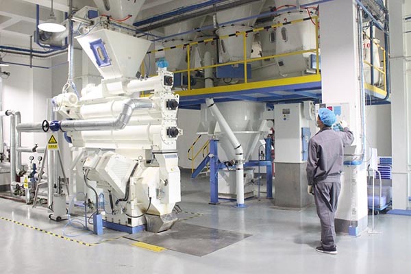 混合工段采用擁有國際專利的“混合王”雙層槳葉高效混合機,小料分開二次混合,物料混合更均勻,營養更均衡。