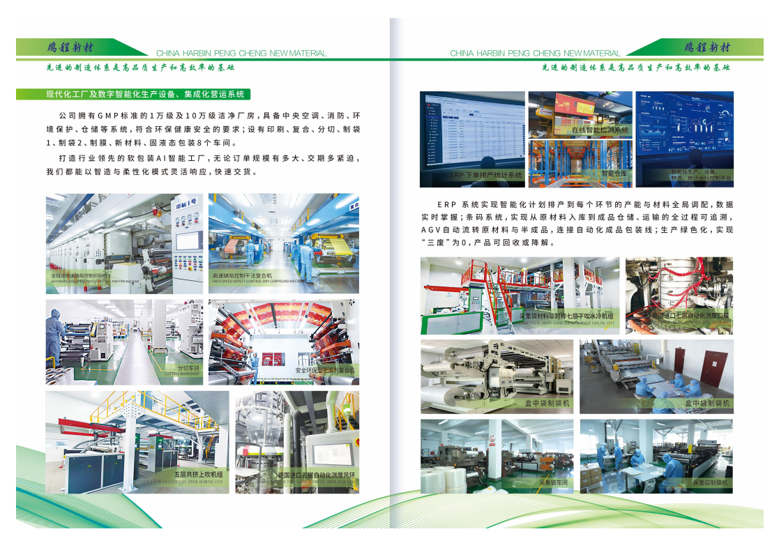 "詳細(xì)內(nèi)容": [ "在生產(chǎn)環(huán)節(jié),鵬程新材料更是展現(xiàn)出了強(qiáng)大的實(shí)力。公司擁有GMP標(biāo)準(zhǔn)的1萬級(jí)及10萬級(jí)潔凈廠房,配備了現(xiàn)代化工廠及數(shù)字化智能化生產(chǎn)設(shè)備,集成化營(yíng)運(yùn)系統(tǒng)打造出行業(yè)領(lǐng)先的軟包裝AI智能工廠。",