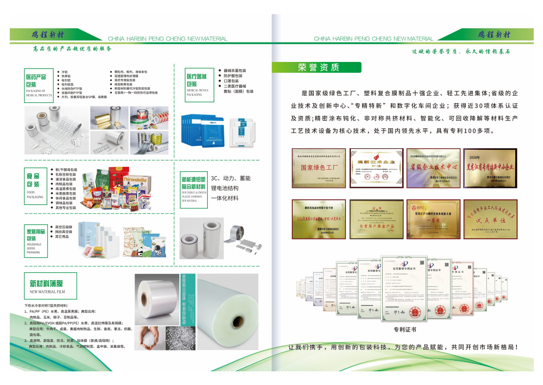 "詳細(xì)內(nèi)容": [ "作為國(guó)家級(jí)綠色工廠、塑料復(fù)合模制品十強(qiáng)企業(yè)、輕工先進(jìn)集體,鵬程新材料憑借其卓越的品質(zhì)、創(chuàng)新的技術(shù)和專業(yè)的服務(wù),不斷滿足客戶創(chuàng)新需求,為全球多個(gè)行業(yè)提供前沿性的結(jié)構(gòu)包裝一體化解決方案,正引領(lǐng)著液體采集與運(yùn)輸包裝行業(yè)邁向更加輝煌的未來。" ]