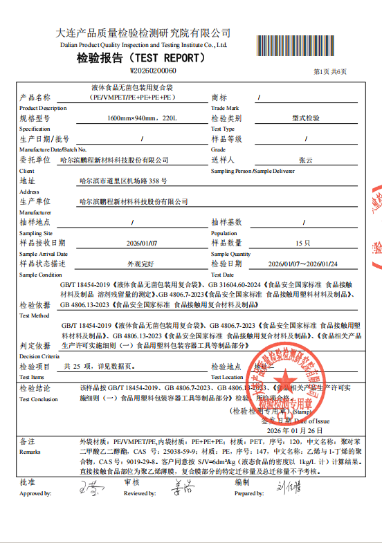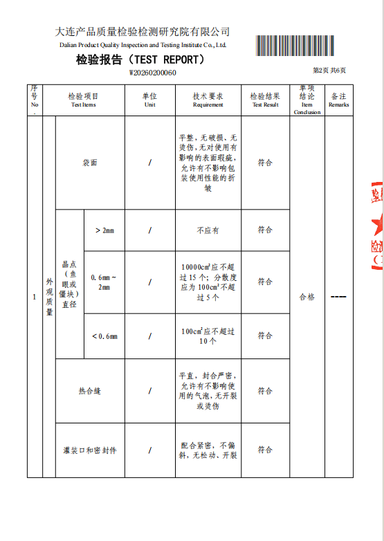 注:該樺樹汁采集袋抗跌落數(shù)據(jù)遠(yuǎn)高于國家標(biāo)準(zhǔn)(0.8m1次),標(biāo)準(zhǔn)號:GB/T28117-2011《食品包裝用多層共擠膜、袋》